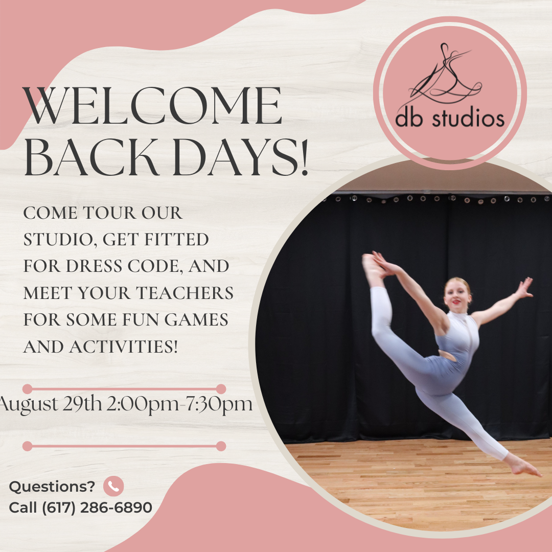 Dancers who have registered for the 22-23 season of dance should attend one of our welcome back days to: get fitted for dress code, meet some of their teachers, tour our Burlingto location, participate in games and activities + more!
